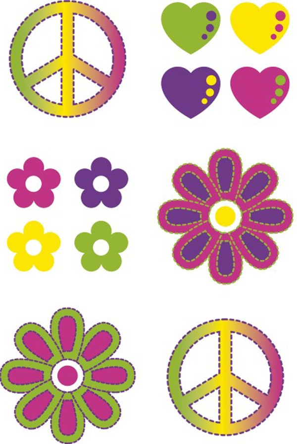 This Adults 60s Fancy Dress Accessory Includes The Temporary CND Tattoos With Hearts, Flowers And Peace Sign.