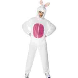 This Fabulous Bunny Fancy Dress Costume Includes The All In One White Hooded Jumpsuit With Zip Front Opening And Bunny Ears And Face On Hood, Great For Animal Themes