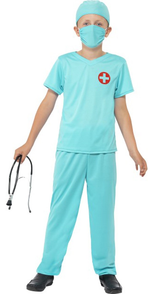 This Children's Fancy Dress Is A Surgeon Costume Which Includes Top, Trousers, Hat, Mask And Stethoscope.