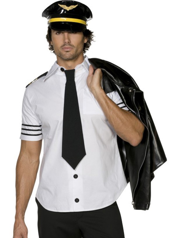 This Men's Fancy Dress Is A Fever Male Mile High Pilot Costume Which Includes The Hat, Shirt And Tie