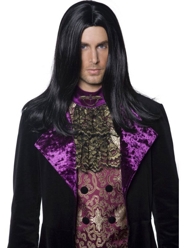 This Men's Halloween Fancy Dress Accessory Is A Gothic Count Wig. Long, Black, Straight Wig.