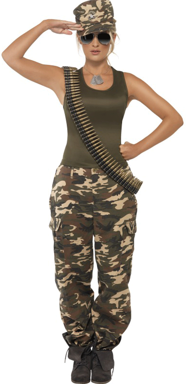 This ladies khaki army costume is great for an army themed party, comes with vest and trousers, available in sizes XS to Large.