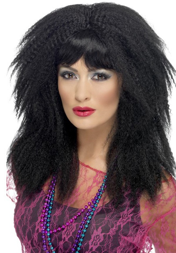 This Ladies 80s Fancy Dress Accessory Includes The Trademark Black Layered Crimp Wig, Long With Fringe