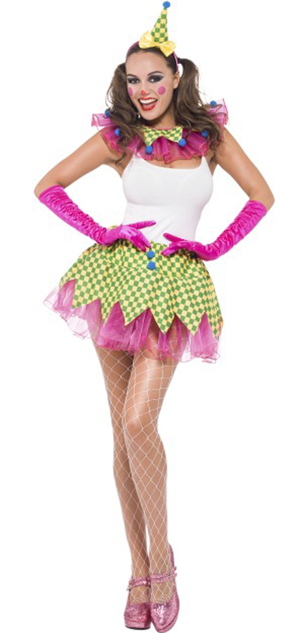 This Fabulous Fever Ladies Clown Fancy Dress Costume Kit Includes The Tutu Skirt With Pink Lace Trim, Matching Ruffle Collar And Hat On A Headband