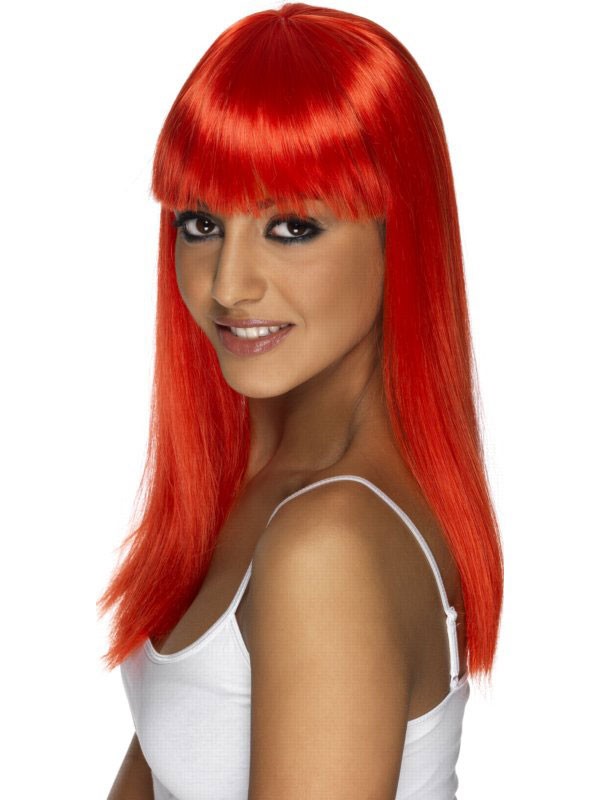 This Smiffys Fancy Dress Accessory Is A Neon Red Glaourama Wig. Long Red Wig With Fringe.