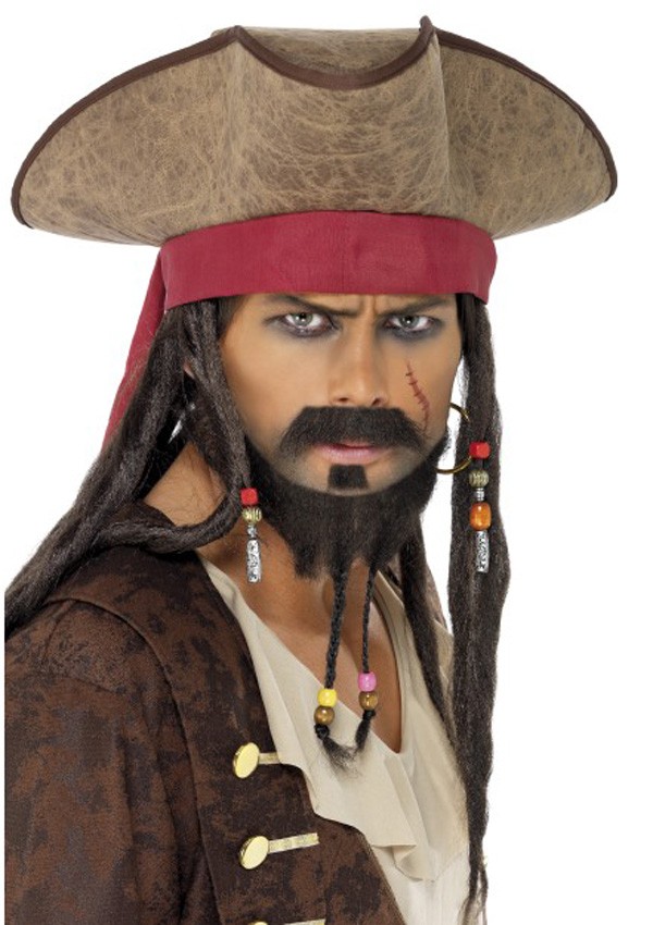 This Mens Fancy Dress Accessory Is A Brown Pirate Tricorn Hat With Attached Dreadlocks