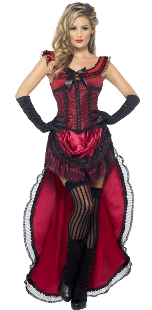 This western brothel babe costume comes complete with burgundy corset dress; this costume is great for a western party.