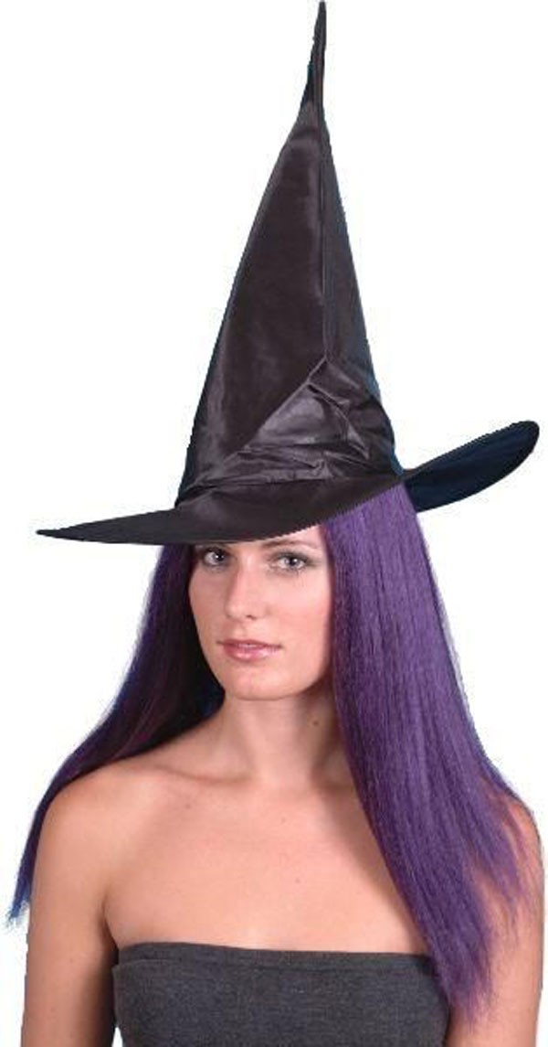 This Halloween Fancy Dress Accessory Is A Black Witch Hat. Shiny Fabric With Wired Edging.